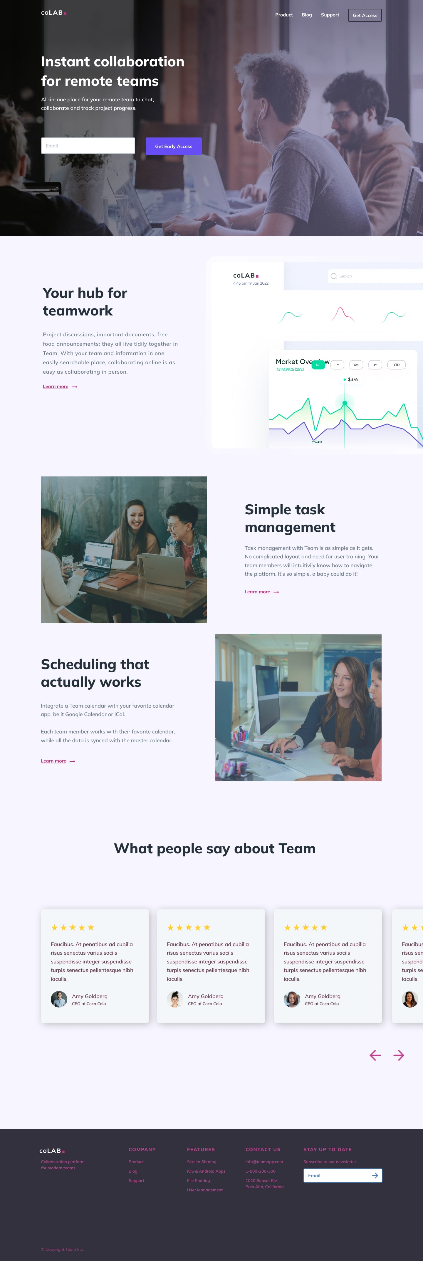 Full website design and build for a concept team collaboration platform. A Landing Page and a beautiful blog.